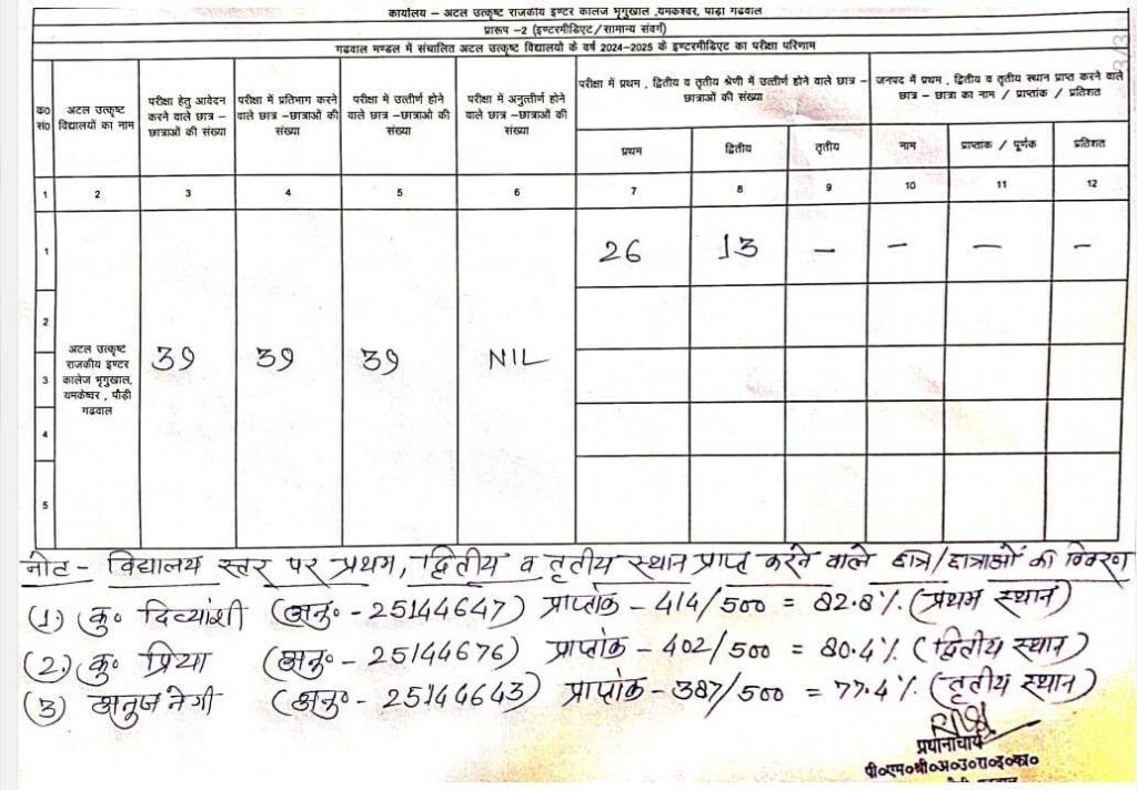 We are happy to share that some of our students from PM SHRI AUGIC Bhrigukhal have scored 100% marks in the CBSE Board Examination 2025. This great result shows their hard work and dedication. It also shows the good teaching and support given by our teachers. We congratulate all these students and wish them the best for their future.